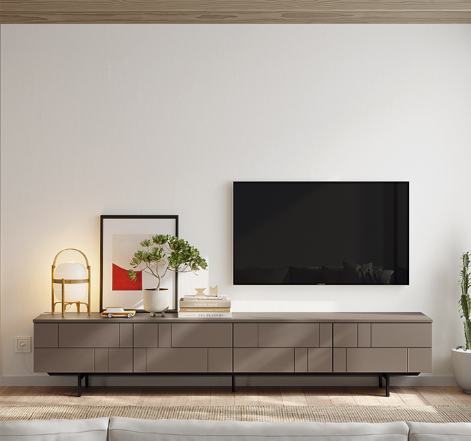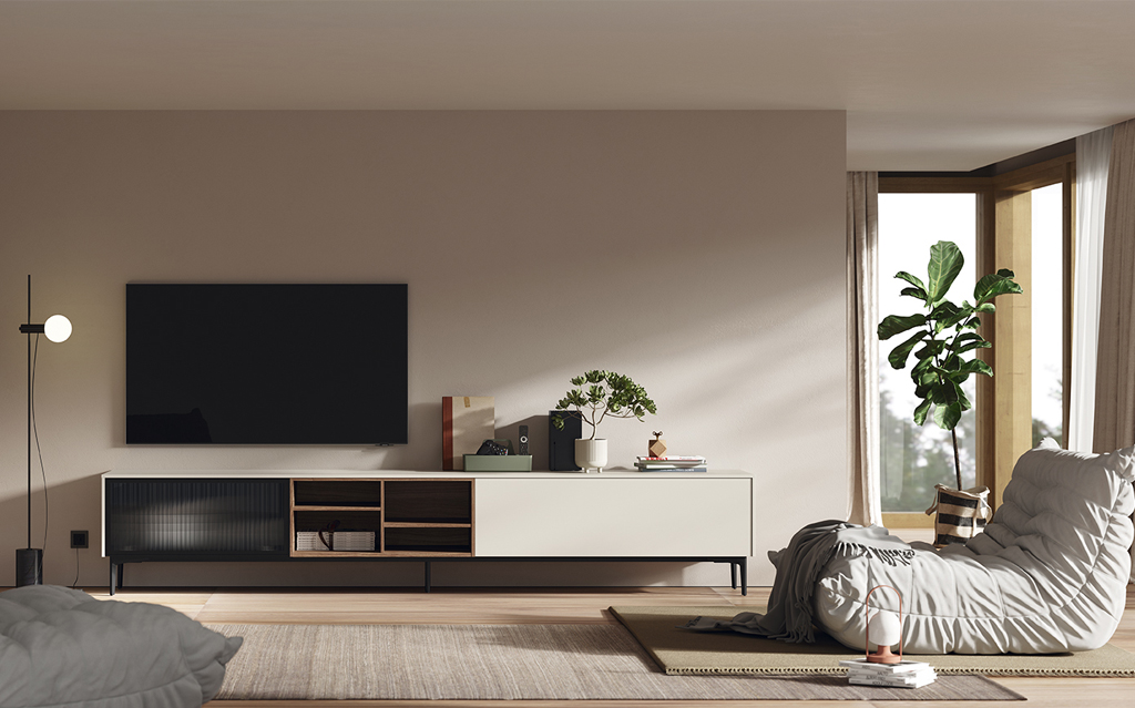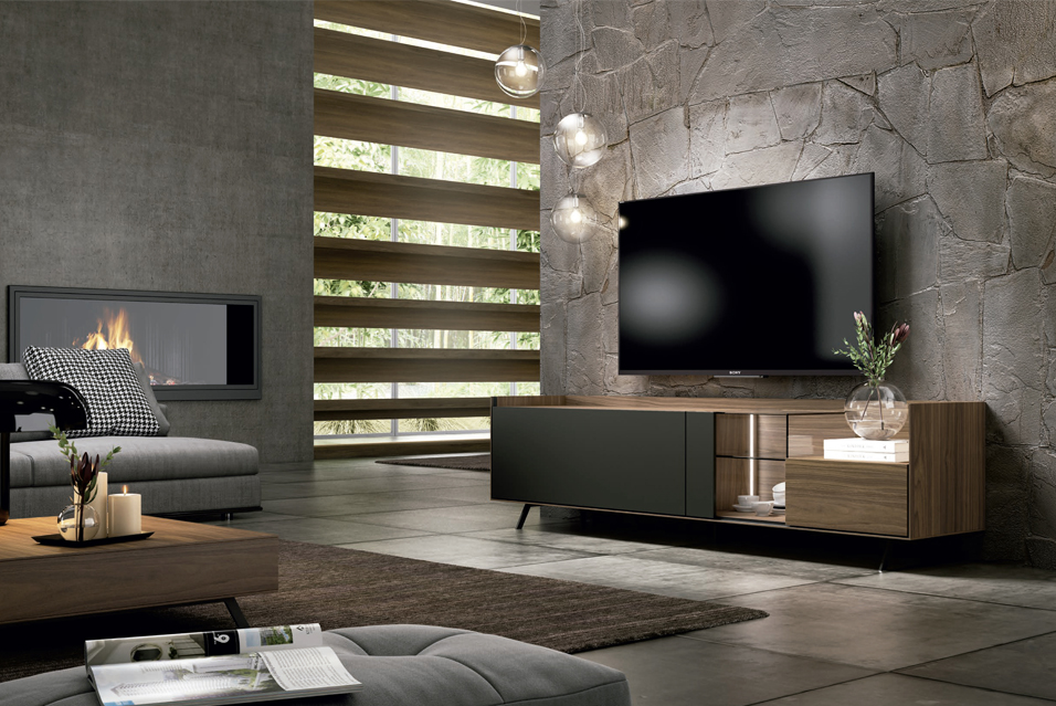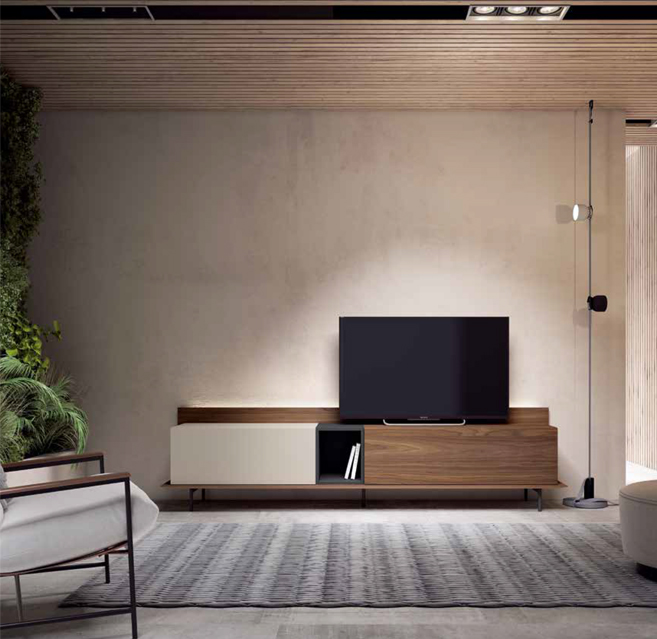 Formas geométricamente puras que enriquecen el espacio con una presencia refinada. Complementos elaborados con pasión y atención a cada detalle, en sintonía con diferentes estilos, pero siempre con una personalidad única. Muebles de TV, el sistema diseñado para una perfecta y versátil inserción del televisor en el mobiliario del salón, tanto desde el punto de vista funcional como estético. La amplia gama de modelos, medidas y acabados permite crear las más diversas composiciones, en armonía con cualquier espacio y contexto estilístico.